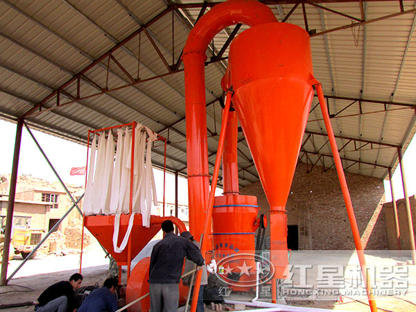 煅烧过的偏钛酸需要经过磨粉才能变成合格的钛白粉。首先可以先将其放在颚式破碎机里进行破碎,然后通过斗式提升机将其送入钛白粉磨粉机中进行磨粉,研磨后的物料经过选粉机选粉,合格的送至储料仓,最后成品进行包装。