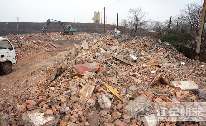 河南郑州建筑垃圾粉碎回收现场