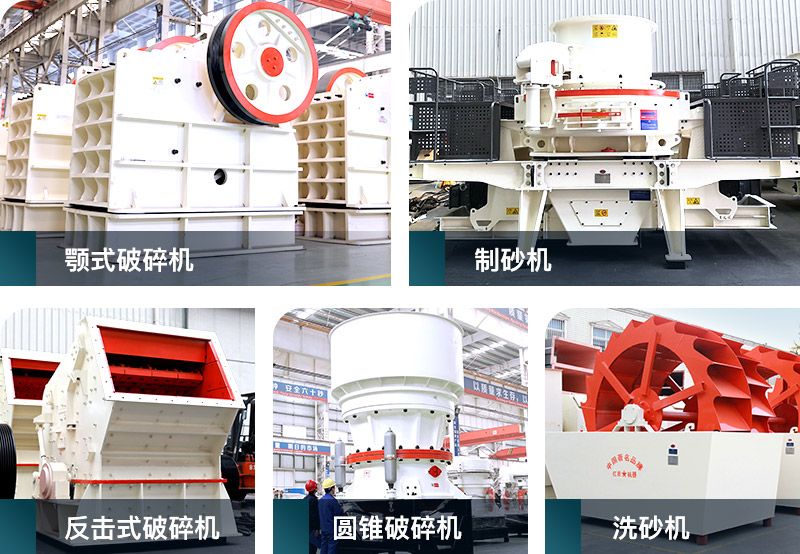 由以上的鹅卵石制砂生产工艺流程我们可清晰地知道,该整条鹅卵石制砂生产线主要由破碎设备、制砂设备、筛分设备、输送设备以及洗选设备这5类设备共同组成,其中核心的设备当数制砂设备,具体配套设备如下: