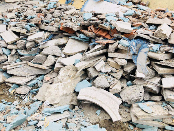 以配置为反击式破碎机为主破碎设备的建筑垃圾移动式破碎机为例,当其工作时,建筑物经拆除后产生的建筑垃圾,经预处理,达到能够进入移动式破碎机的粒度后,由挖掘机送至振动给料机,细小废料经给料机预筛分后排出,大料进反击式破碎机破碎,反击破出料皮带机上方放置除铁器,分离出建筑垃圾中的钢筋,之后物料进入移动式筛分站进行筛分,大料返回反击破循环破碎,小料经皮带机输送至各成品料堆。整个生产过程移动性强,粉碎效率高,满足了用户的要求。