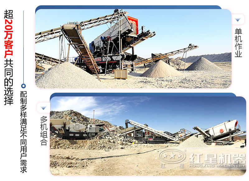 配置设备:移动颚式破碎机、移动反击式破碎机/移动圆锥破碎机(按需选择配置即可)
