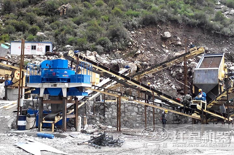B型生产线:振动给料机+锤破+制砂机+振动筛+洗砂机