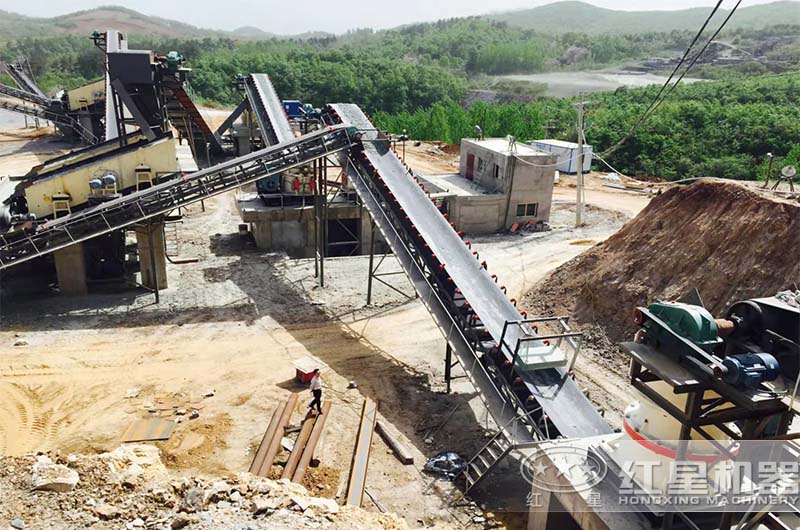 设备搭配: 给料机+CJ150颚式破碎机+SC560单缸圆锥破碎机+振动筛+输送带
